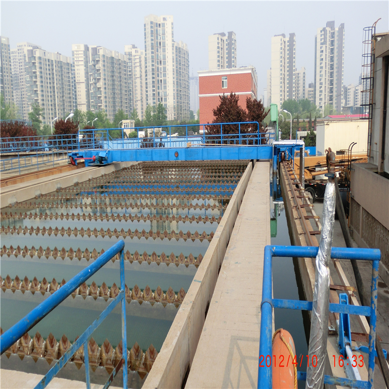 刮吸泥机设有横跨尺子的固定平台,工作时其整机载荷都作用在工作桥中